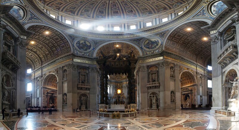 É o maior e mais importante edifício religioso católico e um dos locais cristãos mais visitados do mundo. Sua ocupação é de mais de 60 mil devotos (mais de cem vezes a população do Vaticano). Considerada a construção mais importante do interior do Vaticano, tem uma linda cúpula que domina o horizonte de Roma. Decorada com 340 estátuas de santos, mártires e anjos, está situada na Praça de São Pedro. Sua construção recebeu contribuições de alguns dos maiores artistas da história, tais como Bramante, Miguelângelo, Rafael e Bernini.